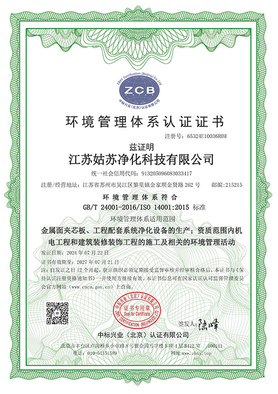 環(huán)境管理體系認(rèn)證證書(shū)